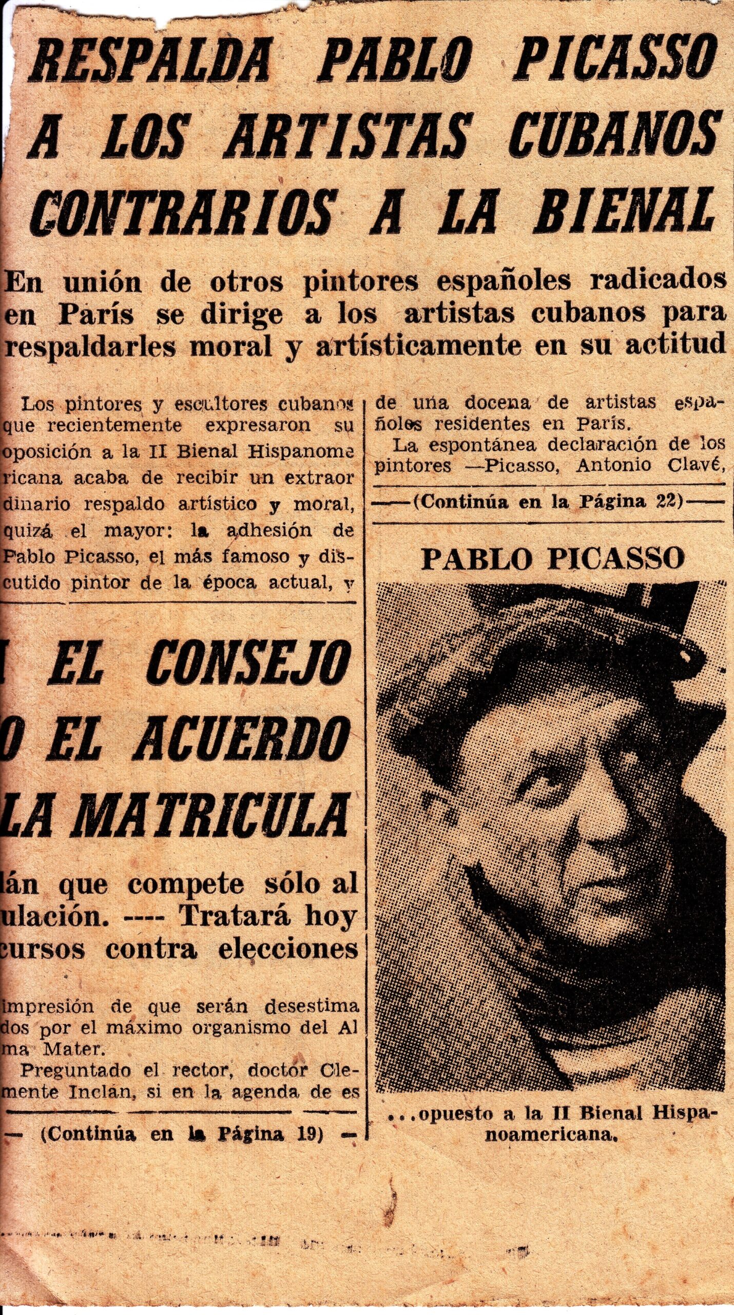 “Que nos parece absurdo que uno de los festejos del Centenario de José Martí sea la celebración en La Habana de la Segunda Bienal Hispanoamericana, ya que dicha exposición está estructurada por un país extranjero, por tratarse de una continuación de la Primera Bienal, celebrada en Madrid, la cual fue convocada por el Gobierno español.”